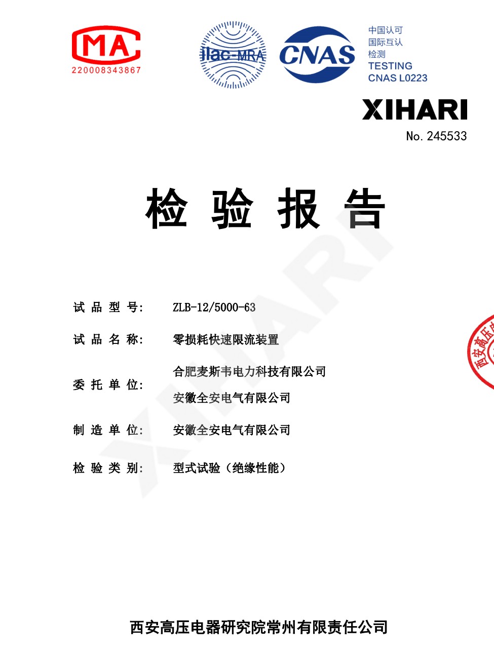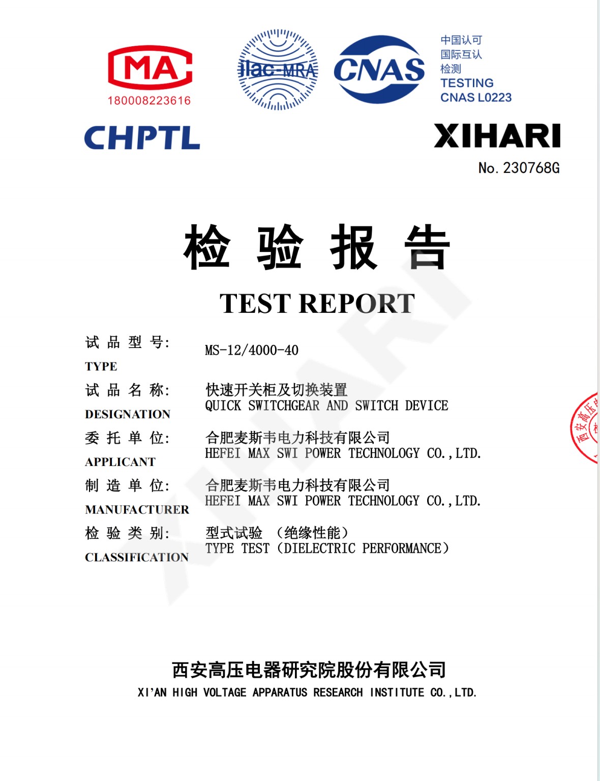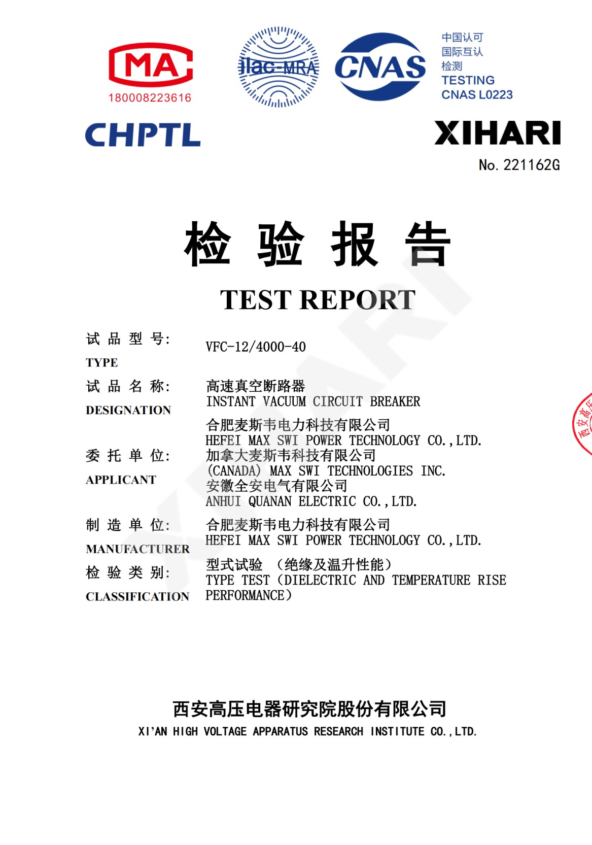公司下属企业合肥麦斯韦电力科技有限公司主要方向是新型高速真空断路器技术研发,公司技术团队与加拿大max-swi技术团体长期研发合作,二十余年间已研发出多品类、高质量的高速真空断路器。