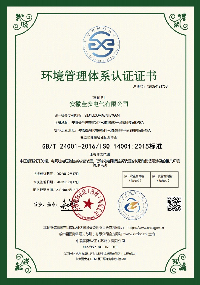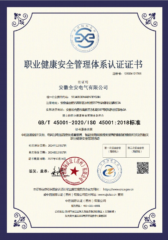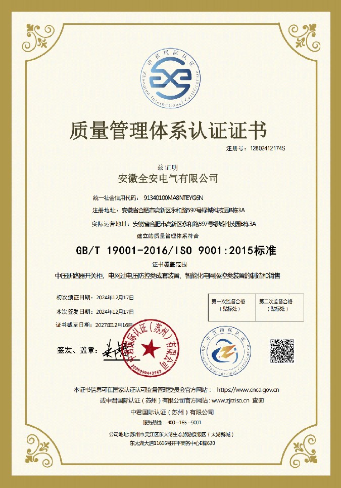 安徽全安电气有限公司位于合肥市高新技术产业开发区。是一家专注于电力系统保护的国家级高新技术企业,公司以快速断路器技术及快速控制器技术为核心,致力于为客户提供安全、智能、经济的供配电解决方案和技术支持,为发电企业、电网公司及用电企业解决在运维过程中遇到的实际问题;在短路电流超标治理、电压暂降治理、短路故障快速隔离、快速消弧与选线等领域有着丰富的案例经验。可为顾客提供量身定制的安全、可靠、高效的供配电解决方案。