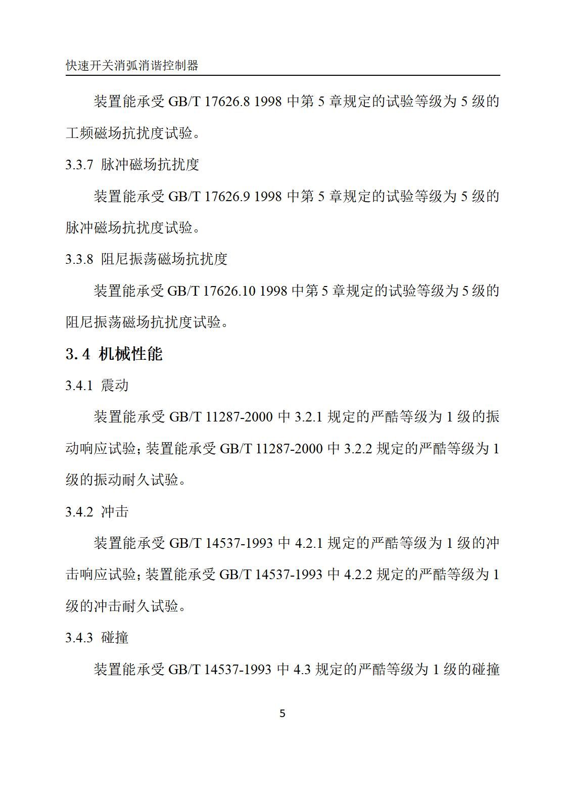 装置能承受GB/T 14537-1993中4.2.1规定的严酷等级为1级的冲击响应试验;装置能承受GB/T 14537-1993中4.2.2规定的严酷等级为1级的冲击耐久试验。