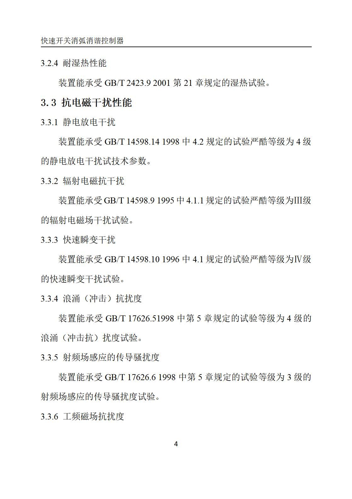 装置能承受GB/T 14598.10 1996中4.1规定的试验严酷等级为Ⅳ级的快速瞬变干扰试验。