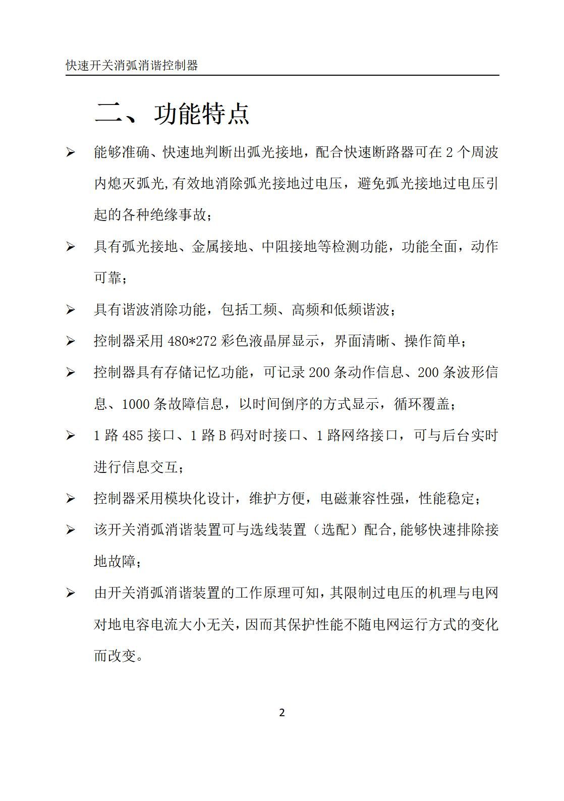 Ø 能够准确、快速地判断出弧光接地,配合快速断路器可在2个周波内熄灭弧光,有效地消除弧光接地过电压,避免弧光接地过电压引起的各种绝缘事故;