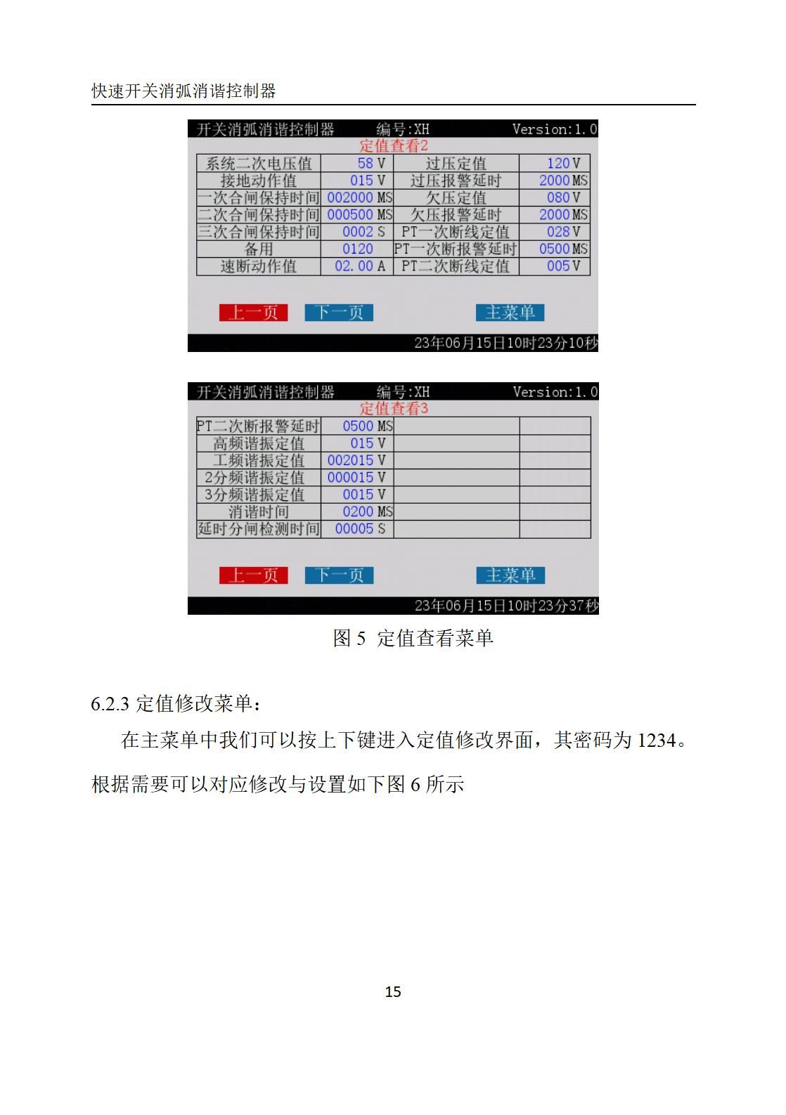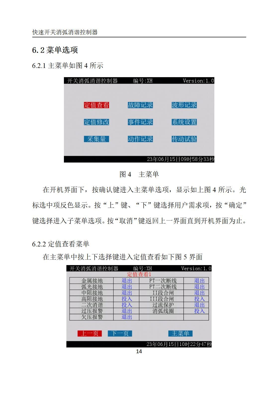 5) 取消键:取消当前定值输入或退出当前菜单;