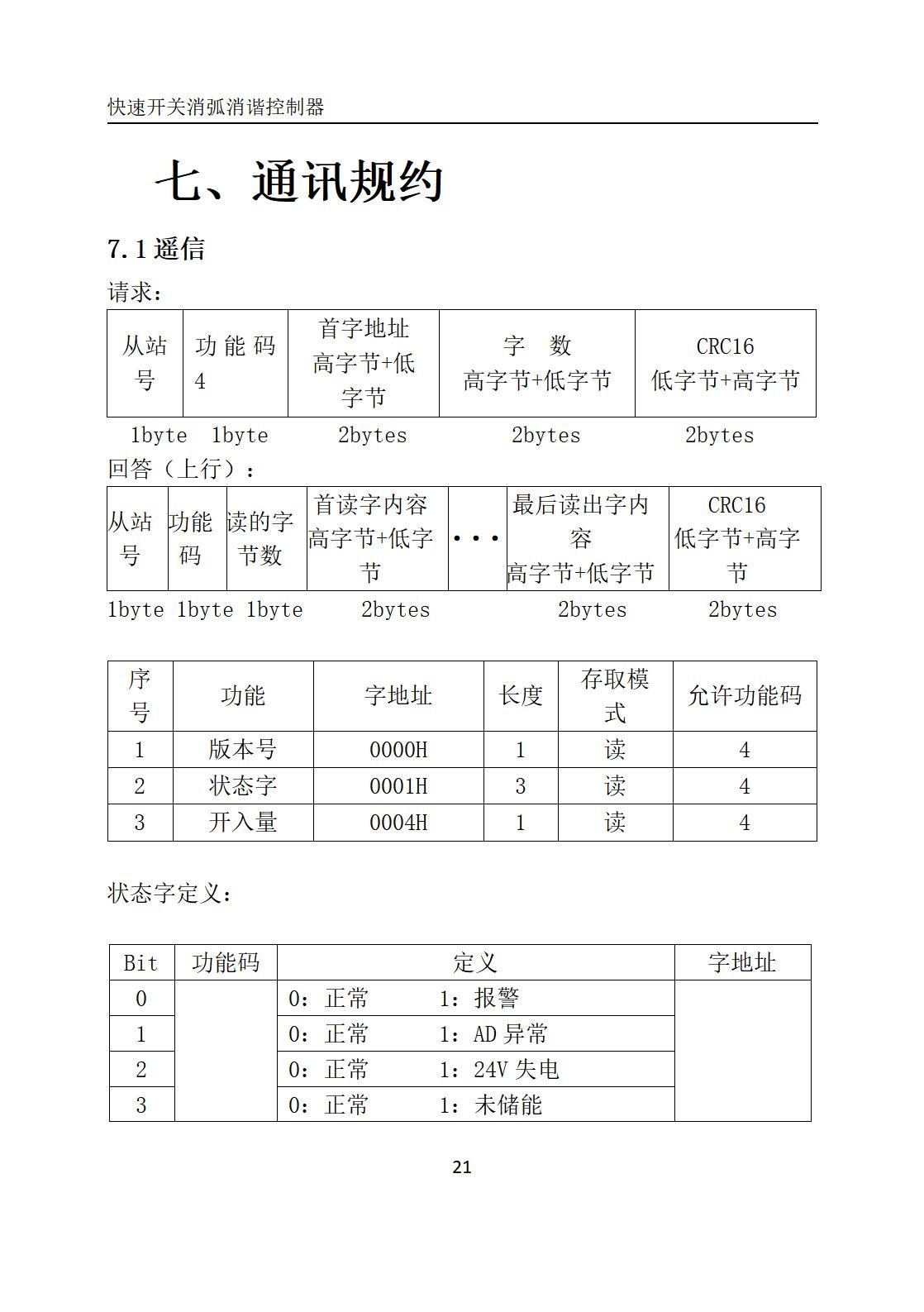 c.状态量电平:输入状态量电平为DC24V。