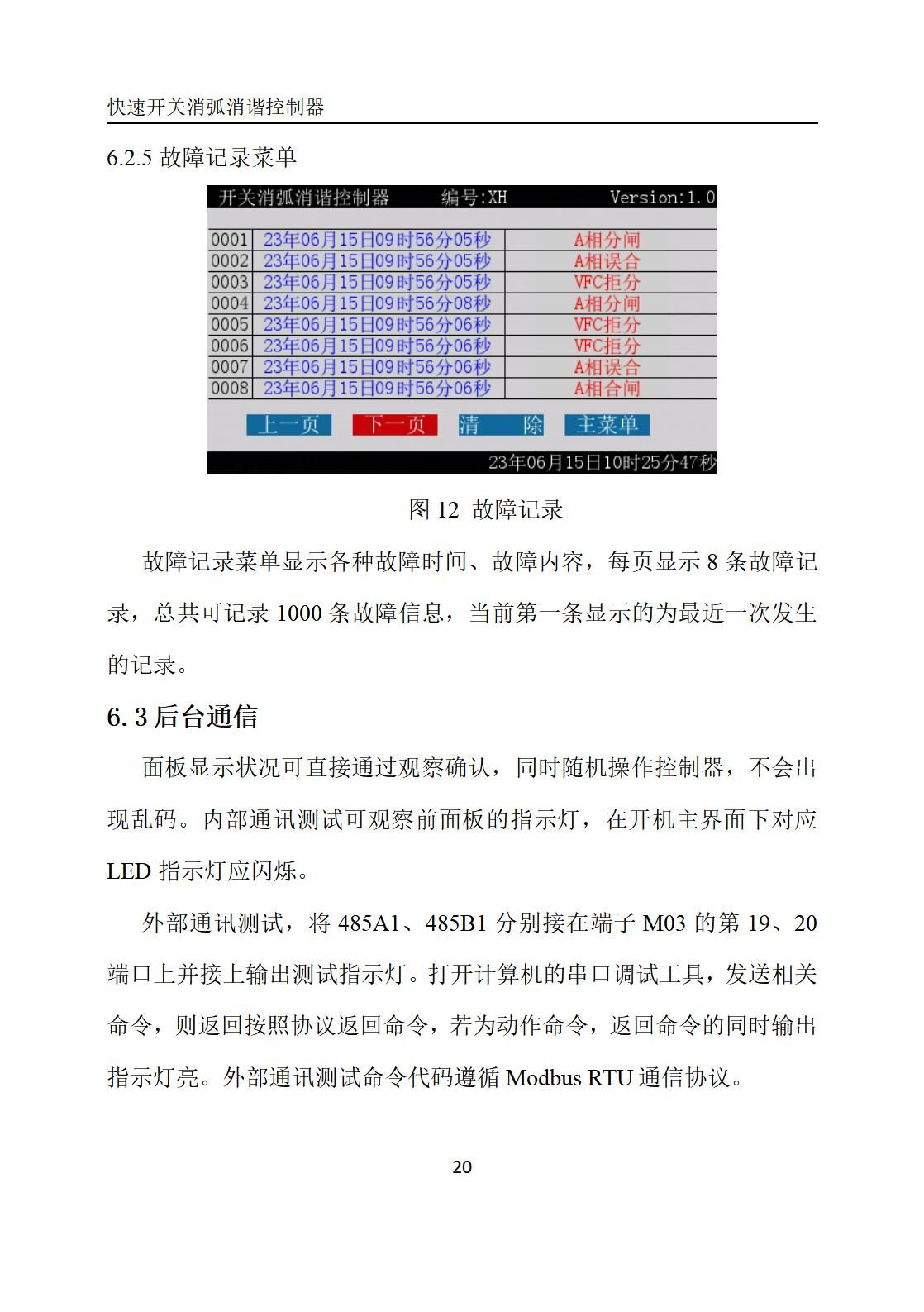 Ø 控制器具有存储记忆功能,可记录200条动作信息、200条波形信息、1000条故障信息,以时间倒序的方式显示,循环覆盖;
